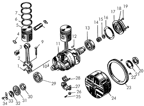 Кривошипно-шатунный механизм пускового двигателя на Т-170