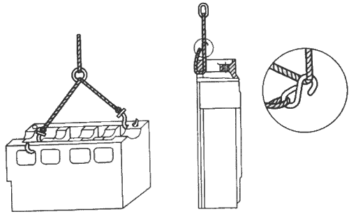 Схема строповки кожуха распределителя и головки блока двигателя Д-160