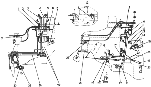 • ручку тяги ограничителя установить вперед до упора и соединить тягу с рычагом ограничителя дроссельной заслонки.